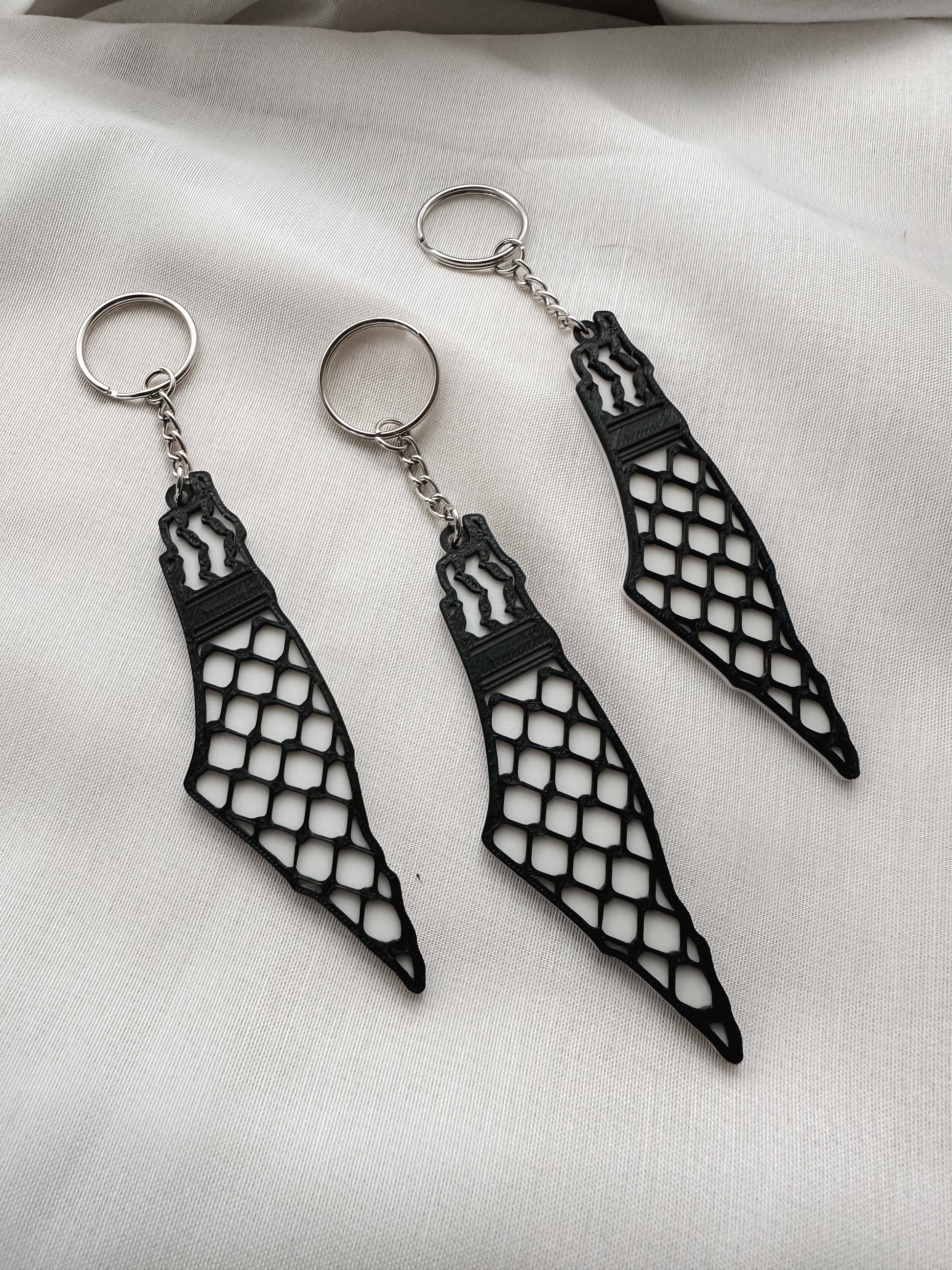 This beautifully crafted keychain features the iconic keffiyeh net pattern, a timeless symbol of Palestinian resistance, resilience, and identity.